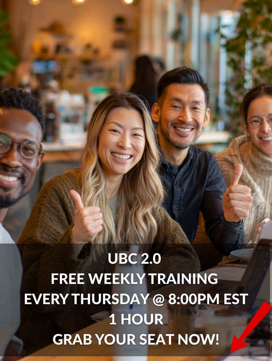 That’s why we’re excited to invite you to our free weekly UBC 2.0 training — a live, 60-minute session every Thursday at 8:00 PM EST.